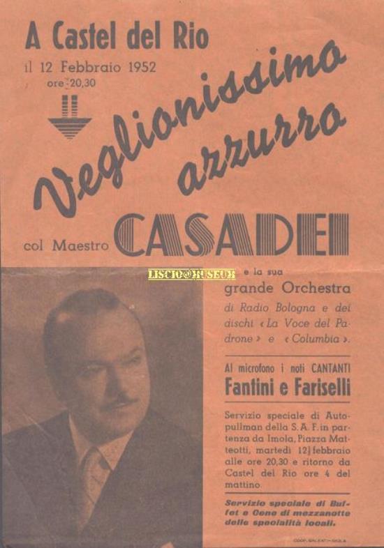 00071 | Programma: Veglionissimo azzurra 12/02/1952 Castel del Rio (BO) (Arancione/Nero 21.6 x 15.5)
