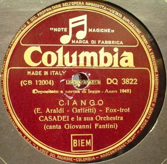 CIANGO - Columbia - Fox-trot - (E.Araldi - Galletti) - Orch. Casadei e canta Giovanni Fantini - 22/06/1948 - DQ 3822